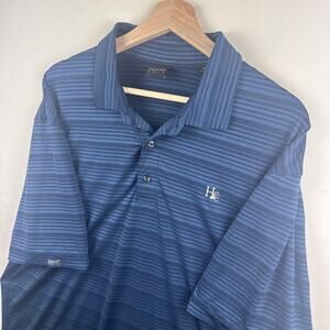 Dunning Golf Mens XL Golf Polo Shirt Striped Navy Short Sleeve Performance