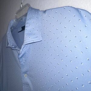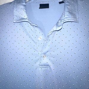 Men's Dunning Golf Polo in light blue with a subtle all over print. Size Large. In excellent pre-owned condition.