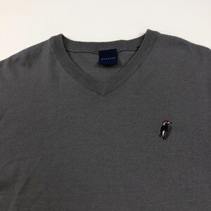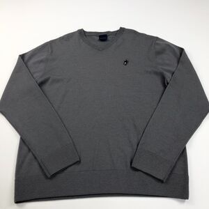 Dunning Merino Wool Large Mens Pullover V-Neck Sweater Gray Logo