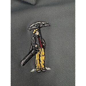 This Dunning Performance Golf Polo Shirt is a men's XL size in a stylish gray color. Made of 100% polyester blended fabric, this polo features a collared neckline with a spread collar style and a pullover closure. It is designed for outdoor activities like golf, tennis, and squash, with performance features such as moisture-wicking, quick-dry, and breathable properties. The shirt also includes accents like buttons, embroidery, and the golfer logo, making it a classic and sporty addition to your activewear or casual wardrobe.