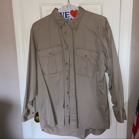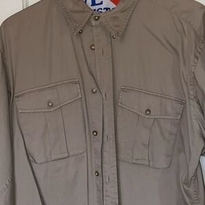 Dunn’s Taupe Hunting Shirt With Button Safe Pockets And Durable, Manly Design.