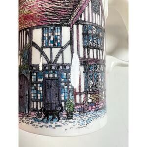Gorgeous set of 2 Dunoon Doorways series cottage cups featuring detailed cottages, their beautiful doorways, and cute dogs and cats hidden throughout. No flaws. 4.5”tall 3” diameter.