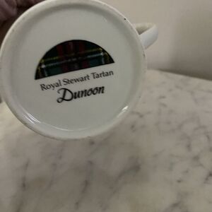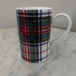 This is a set of three Dunoon bone china mugs featuring the Royal Stewart tartan pattern. Dunoon mugs are handcrafted in Staffordshire, England, using traditional methods developed over three family(2 are white based tartan and one is red plaid)