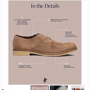 • Sleek and stylish, the Ellis suede buck oxford shoe is the perfect way to add some tailored casual style to your every day look. Available in tan and navy. • Features a 100% premium soft suede upper. • The 100% naturally tanned cow lining provides moisture-wicking comfort letting your feet breathe. • Has a padded latex footbed to offer added cushion for all-day comfort with maximum rebound technology. • Shoe Width: Medium. • Designed in California USA.