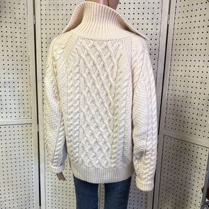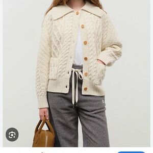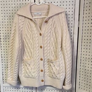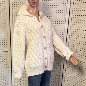 Unisex Fisherman’s knit cardigan in light cream with 6 wood button front,2 front pockets,and high collar ❤️❤️❤️❤️ chest 21 length 26