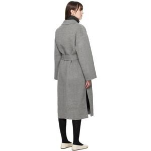 trench, trench coat, minimalist, spring coat, fall coat, wool trench, long coat, gray belted trench