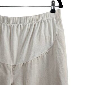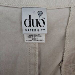 Duo Maternity Cotton Stretch Knit Tummy Panel Pull On Beige Denim Pants Size 14