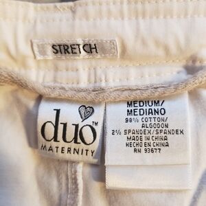 Duo Maternity Khaki Cropped Pants Cuffed Stretch Waist Pregnancy Band