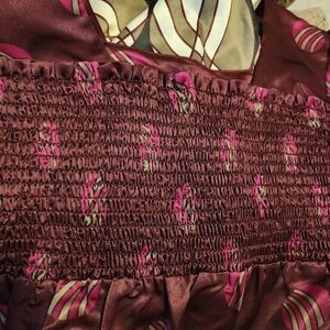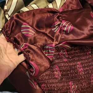 Duo Maternity Silky Maroon Top Women's Small S Shirred Stretch Chest Tie Back