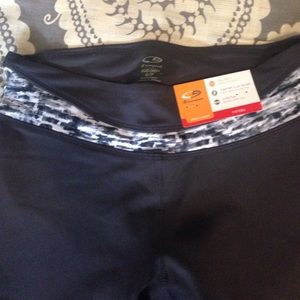 Grey active pants with grey and white detailing. Brand new. Never worn.