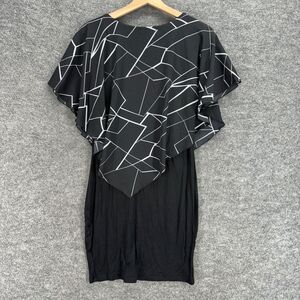 DuoDuo Dress Women XL Black Geometric Shift Midi Short Sleeve Round Neck