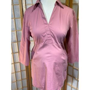 Super cute, soft blouse from Duo Maternity. Size medium. Tie back waist. 3/4 sleeves. Side zip. 62% cotton, 33% polyester, 5% spandex. Machine washable. Made in Indonesia. Excellent condition. Nonsmoking home.