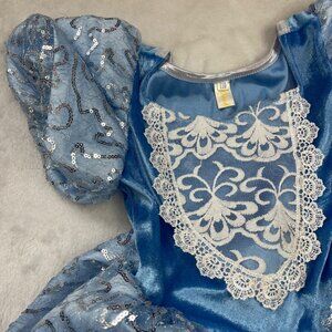 This dress-up cinderella style dress is designed with stretchy fabrics for a comfortable and flexible fit that adapts to your child's movements. Whether they're running, twirling or dancing, they'll enjoy unrestricted playtime in this dress-up set. This elegant blue dress features a sequined lace bodice, complemented by a voluminous tulle skirt. The delicate embroidery adds a touch of luxury, ensuring your little one stands out with grace and style.