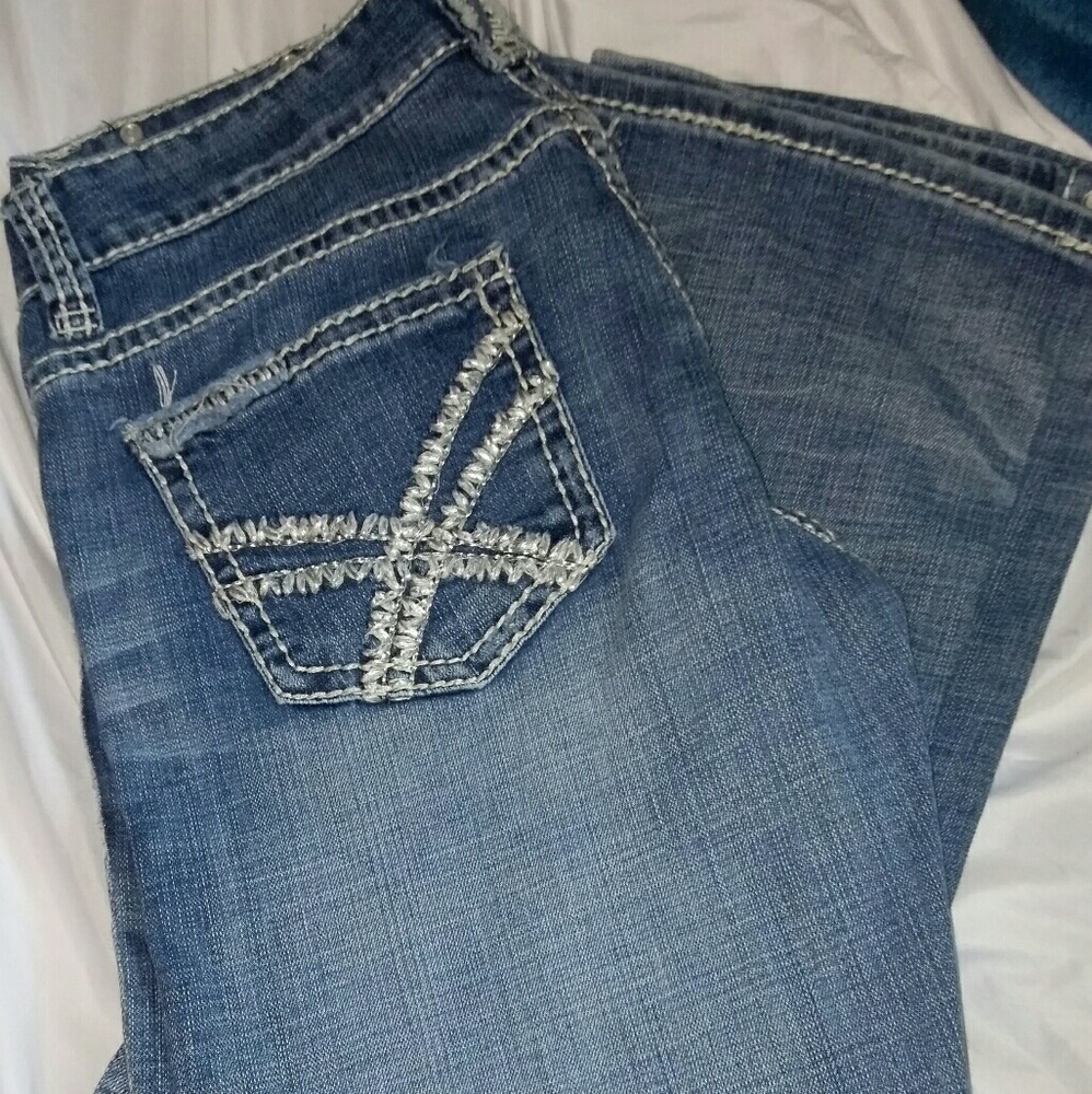 @stefm2017 The jeans in the middle with the silver lace like pockets, are they mid rise and the size 33x36 ? I'm interested thank ya!