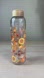 Durable Borosilicate Glass Water Bottle Orange Floral Leaf Pattern, Wood Top