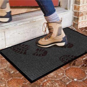 🧿ABSORBS MUD, DIRT AND MOISTURE: The strong Rubber Beveled border in our mat is designed to help form a retention dam to block moisture, mud or other messy unwanted debris from getting into your home. While the slightly raised polypropylene fabric helps to trap dirt within its patterned grooves and dries quickly to perform even on high traffic entrance ways.