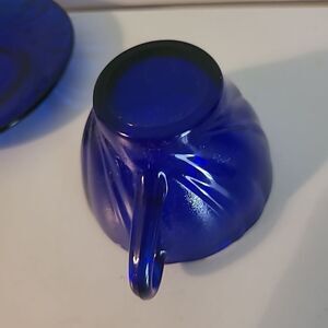 Pre-owned in good condition. Colbalt blue cup and saucer in a swirl pattern. I have 7 of these.