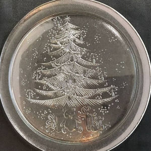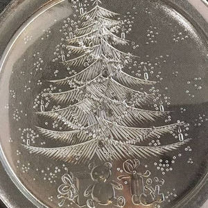Duralex Platter Christmas Tree Vintage 13" Engraved Moulded Clear Glass France