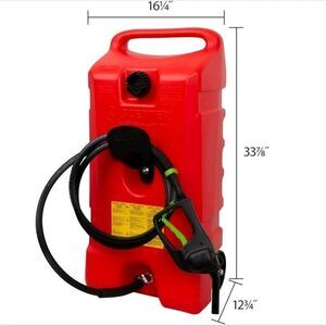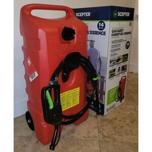 The Duramax 14 Gallon Wheeled Utility Transfer Tank with Manual Pump in Red is a reliable and durable fuel caddy designed for gasoline storage and transport. Made of high density polyethylene, this tank has a capacity of 14 gallons and is equipped with a manual pump for easy dispensing. With its sturdy construction and wheeled design, this utility transfer tank is perfect for use in various industrial and commercial settings. The Scepter brand ensures quality and performance, making it a trusted choice for fuel storage and transfer needs.