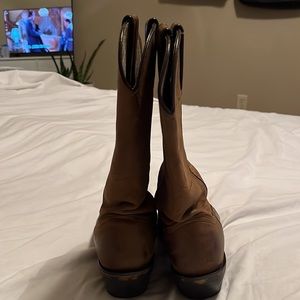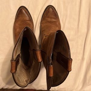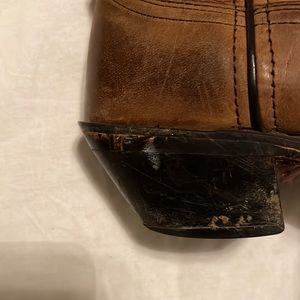 Worn. 1 1/2 heel. Slight wearing on heel shown in pictures. Light brown. Pointed toe.