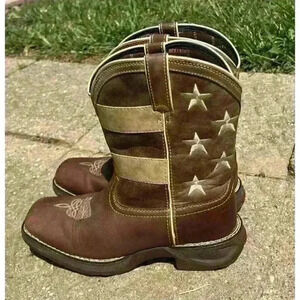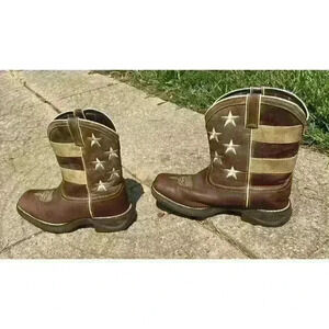 Durango Brown Union Flag Patriotic Western Boots Kids 8” Size US 6M