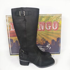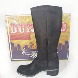 Women's Durango Fashion Boots: In the Durango City Women's Charlotte Engineer Boot, feeling like a city queen is simple. Can a boot be both graceful and utilitarian? You bet it can! The Charlotte Engineer boot features three buckle straps: two at the ankle and one at the top of the supple leather upper. It's time to go tall, girls. This is a 14 inches pull-on boot! Stacked on a two-inch chunk heel, you can walk in these with confidence and attitude. The toe is rounded-square, and this boot comes in black. Wear these with your LBD or favorite pair of jeans!