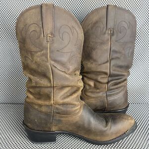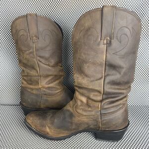Durango Cowboy Boots Mens 9.5 D Brown Leather Western Round Toe Embroidered