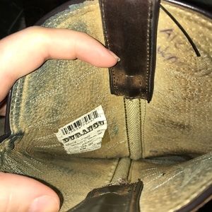 Distressed, as well as worn in, Durango Cowboy boots. So durable and comfy though. Can be paired with so much!