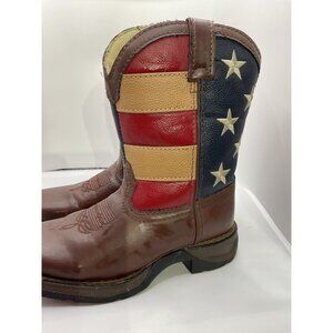 Durango Kids 8" Size 13.5 Western Boots American Flag Design Brown Leather