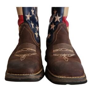 tags: western cowboy cowgirl rodeo boots handcrafted ranch rustic festival concert country roping horse riding barn rugged outerwear workwear america flag americana patriotic