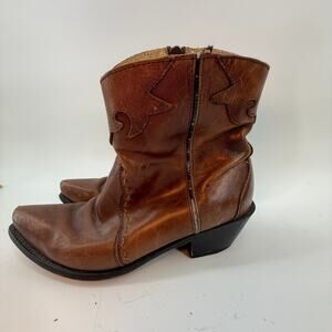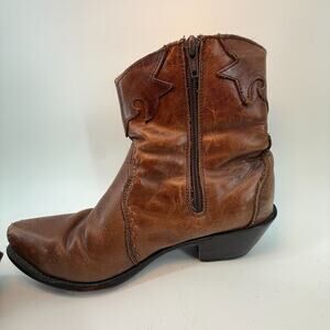 Durango Leather Ankle Booties Cowboy Boot Heeled Brown Womens Sz 8M Boho Western