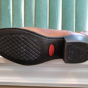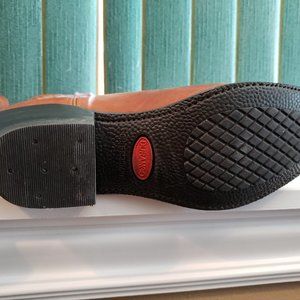 These stylish Durango boots are pre-owned, worn only a few times, and in excellent condition. Information for the boot size and material is provided on one of the photographs: leather upper and lining, balance of material is man made, and size 9M. The discoloration on the toes of the boot are commonly found on this material. The heel height is approximately 1.75". The original price for these boots was $145.