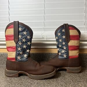 Durango Rebel Boots Men's Size 7.5 EE Brown American Flag Cowboy Square Toe Mid Calf 12"