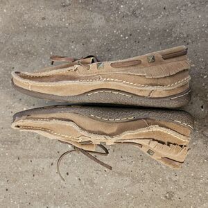Suede leather studded fringe women's moccasins size 7m no longer made by Durango can be worn as house slippers or out and about durable sole. Great used condition.