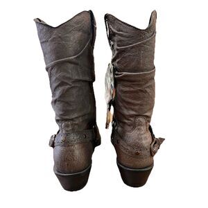 Durango Western Slouch Harness Leather Cowboy Boots Gray Brown Women's 9.5