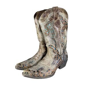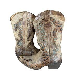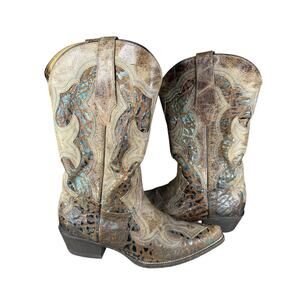 Durango Women’s 11 Leather Western Cowboy Boots Brown Turquoise DWRD009