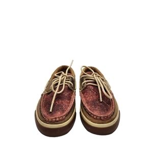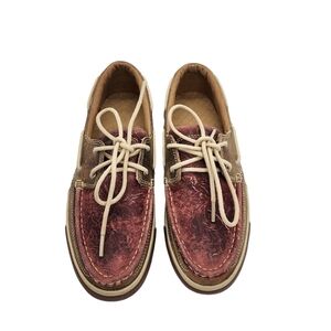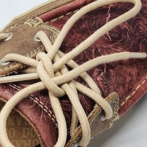 Women's Western Embossed Boat Shoes from Durango in Brown.