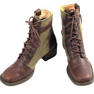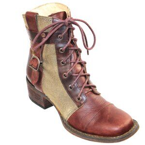 Durango World Traveler Lacer Oak Brown Vintage Leather Canvas Lace-Up Bo…