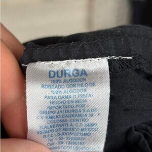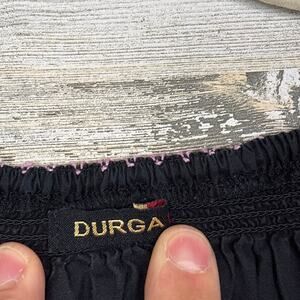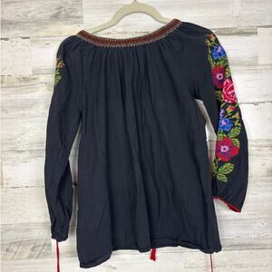 Durga womens small black boho embroidered blouse lightweight long sleeve crew