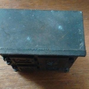 Durham Industries Vintage 1970's 3-piece Metal Miniatures #'s 21, 24 & ? American Greetings Doll House Collectibles. Oven, Stove, Pot Belly Stove. Good to very good conditions.