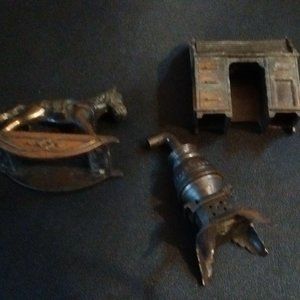 Durham Industries Vintage 1970's 3-piece Metal Miniatures #'s 11, 16, & ? American Greetings Doll House Collectibles. Pot Belly Stove, Rocking Horse, & Roll Top Desk. Good to very good conditions.
