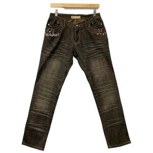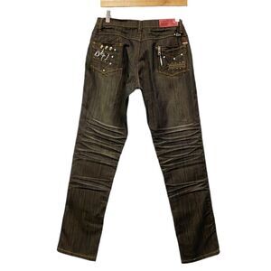 Durific mid-rise Straight Leg Whiskered Embellished dark wash jean Women’s Sz 30