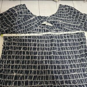 Dusak Designs Blue and White Layered Ruffle Blouse Size XL