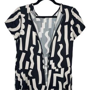 Dusen Dusen Black Cream Squiggle Abstract Shape Short Sleeve Mini Dress - XS