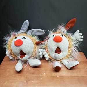 The Dust Bunnies Fuzzy and Wuzzy stuffed plush is are small (6-14 inches) officially licensed toys from the 1995 release of "The Big Comfy Couch" on PBS. Made by Commonwealth, this multicolored Dust Bunny is a retired collectible. Perfect for fans of the TV show or collectors of television memorabilia, these cute and cuddly dust bunnies brings a piece of nostalgia to anyone who remembers the beloved characters from this series.