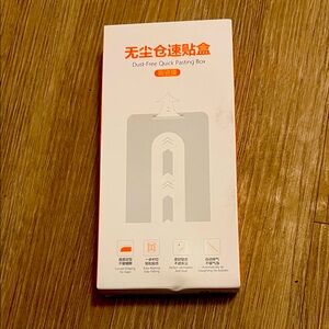 Dust-Free Quick Pasting Box in white and orange. Easy application and clean finish.