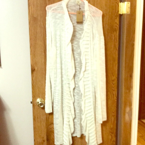Knee length white hand knit sweater/duster sized 3x actually fits like a xxl.