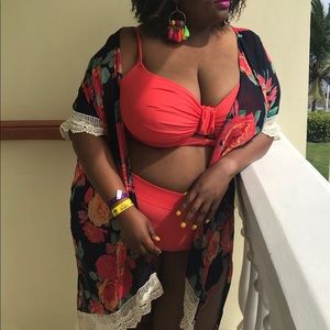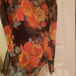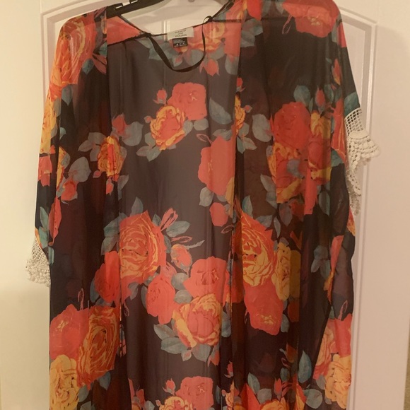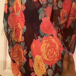 Black floral orange duster with lace with slits on the side