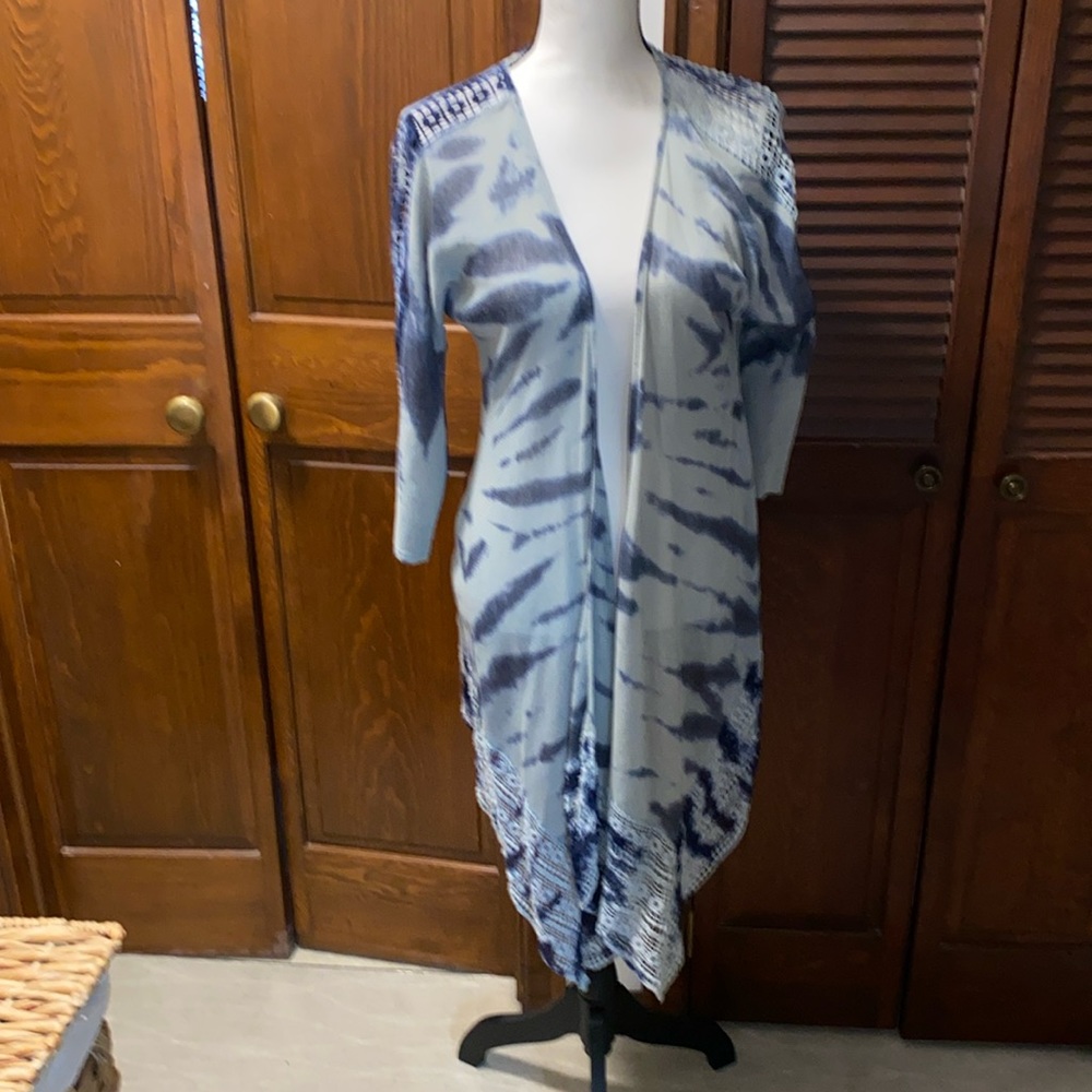 Tie-dyed duster with crocheted on the top and bottom