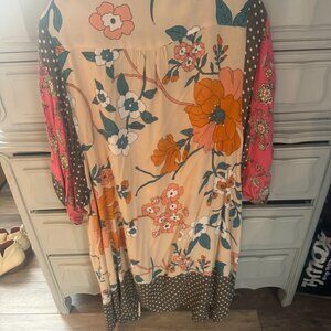 This lightweight Duster can be worn with almost anything. It has a BOHO feel and look. I purchased it at TJ Max. It is quality material.